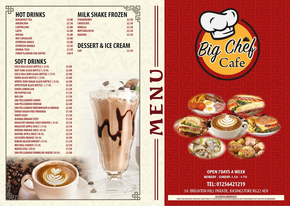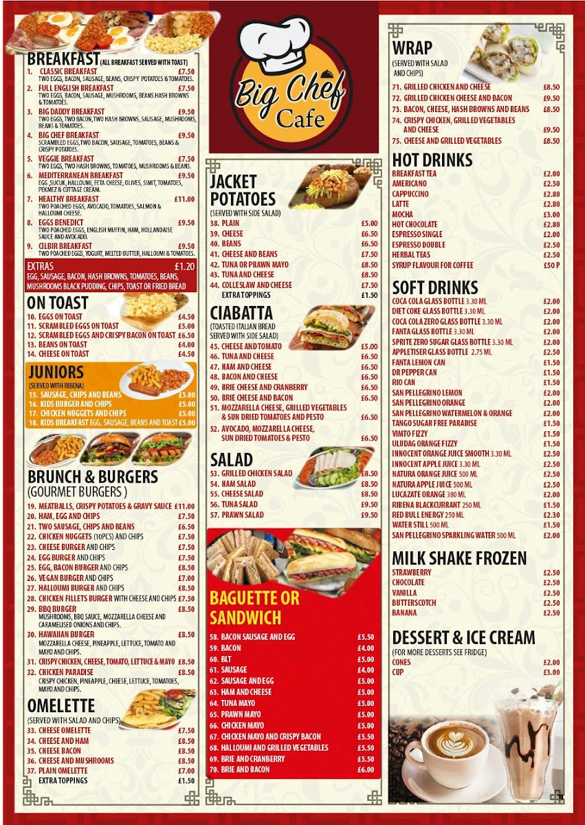 The menu at Big Chef Cafe offers a straightforward selection of familiar, comforting dishes, ideal for casual dining moments throughout the day. Whether you're stopping by for a relaxed breakfast or a light lunch, the choices are approachable and satisfying without fuss.